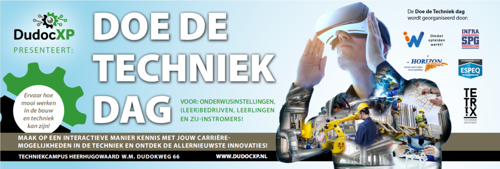 De “Doe de techniek dag” is een initiatief van opleidingsbedrijven Espeq, Horizon College, IW, SPG en Tetrix Techniek. De “Doe de techniek dag” is tevens een onderdeel van het Project Dudoc XP. Dudoc XP zet in het op vergroten van de instroom van leerlingen in het VMBO en MBO. Daarnaast streven we in het project naar een grotere uitstroom uit MBO. Daardoor komen er meer mensen beschikbaar voor de arbeidsmarkt. In het project is ook aandacht voor zij instromers en een leven lang leren.